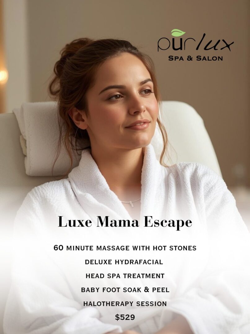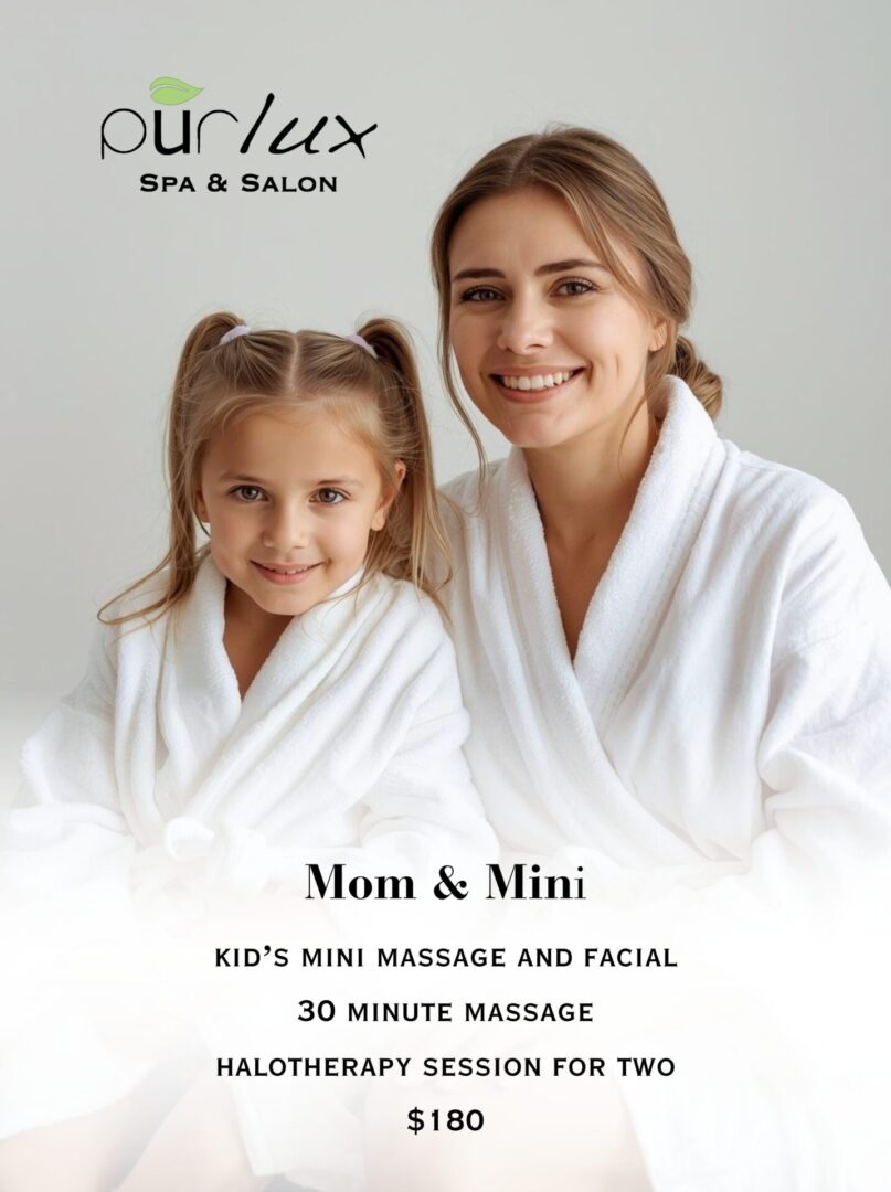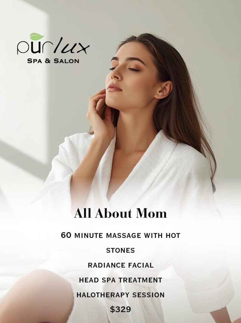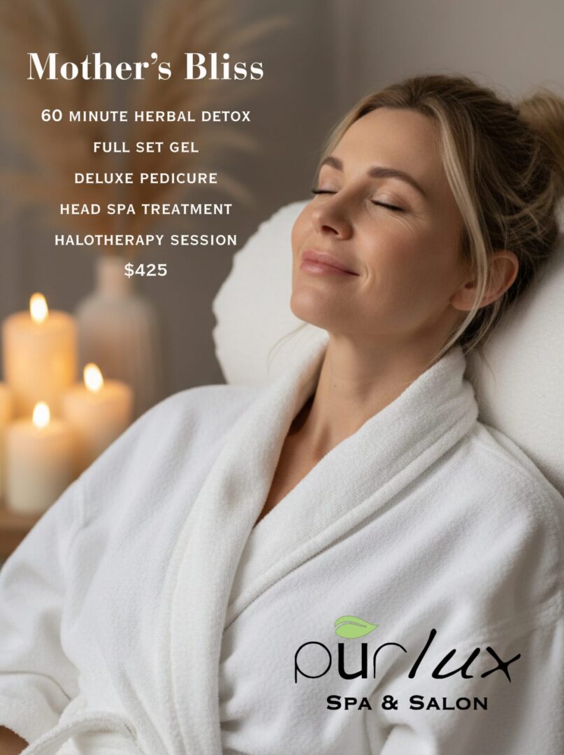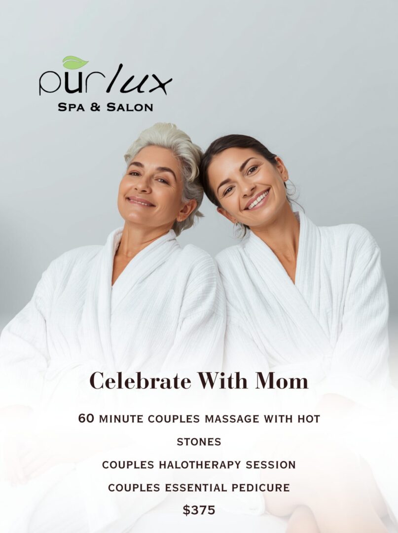 Who could be more important than the woman who brought us into the world, cared for us, loved us through our most difficult times? Show mom just how much you care with a spa day where she will be pampered from head to toe. Shop our curated special packages below and save - or create your own. All packages include full-day access to our steamrooms, saunas, tranquility lounge, garden lounge, robe & towel service and separate men and women's locker rooms. Spa bucks are an excellent choice when you aren't sure what mom might enjoy, she can use spa bucks for any service or retail item at PurLux. Stop by and shop our luxury robes, pajamas, and lounge wear - or purchase a gift card online by following the link below. Mom is in great hands at PurLux!